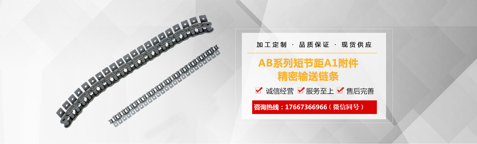 AB系列短節(jié)距A1附件精密輸送鏈條